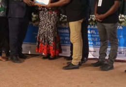 Mwanafunzi Ushindi Peter Saktay kutoka shule ya Sekondari Magugu H/Wilaya ya Babati amepewa zawadi ya fedha kutoka kwa Mkuu wa Mkoa wa Manyara Mhe.Makongoro Nyerere baada ya kushinda uandishi wa Insha...